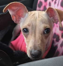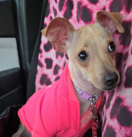 You can fill out an adoption application online on our official website. Rachel: certified drama queen turned emotional support potato. She started her glow-up by shredding her potty pad—not out of stress, but because apparently, destruction is her love language. Tossing it in the air like confetti? A+ entertainment. And once she decided the humans might not be out to ruin her life, she let me sneak in a quick pet… as long as I didn’t make eye contact. Classic Rachel. Then came the big moment—into my lap she went, trembling like a chihuahua in a snowstorm, only to fall asleep like I was the world's most boring Netflix show. Progress! She’s enjoying some shopping trips to gain some confidence. That night she shocked everyone by sleeping through without peeing, pooping, or protest. If you knew her track record, you’d be asking what alien replaced our mess-making gremlin. And then—drumroll please—she peed outside for the first time. Not exactly Olympic gold, but in Rachel Land, it’s a huge win. She now follows Tyson, resident pup, like a little shadow, copying his every move, including bathroom breaks. Honestly, she thinks he’s the cool older sibling and we’re just her weird landlords. She’s also discovered she has opinions now. Crate her? Expect sassy barks. Leave her alone in the bathroom? Prepare for protest vocals. But let her cuddle with Tyson? Pure bliss. Don’t get too confident though—she’ll bounce around like a happy maniac with the dog pack, but try approaching her solo and she remembers she’s made of anxiety and secrets. Still, she’ll sneak in for treats if she thinks you aren’t paying attention. Classic Rachel move. Rachel has a soft soul. She needs a quiet home without chaos to help her continue to build her confidence. Her ideal home would have very little time of confinement away from her humans. She is a snuggler at night with her human, once she starts to trust, and she LOVES to cuddle up with other dogs on the softest bedding she can find. She’s not quite ready for center stage, but our shy little chaos goblin is coming into her own. Slow and steady wins the race—and she’s at least facing the right direction now. RachelLeighCook is from Texas. If you are interested in getting to know this animal better, please fill out an adoption application. An adoption application is the best way to show your interest in an animal and is not a binding contract. To learn more about Ruff Start’s adoption process and the care our foster animals receive, please visit our How to Adopt page. *Rescue puppies are notorious for losing their birth certificates before entering our rescue. We cannot guarantee the breed or size they will be full grown.* If you are unable to adopt but want to help this animal and others in our care, you can donate to support the medical and veterinary needs of all Ruff Start Rescue animals. Visit this organization's web site to see any additional information available about this pet.October 11, 2025, 11:43 am